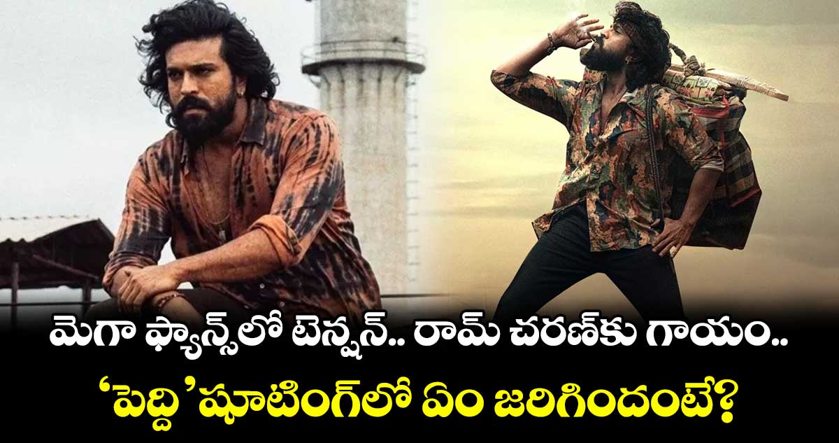 మెగా పవర్ స్టార్ రామ్ చరణ్ , దర్శకుడు బుచ్చిబాబు సాన కాంబినేషన్ లో తెరకెక్కిస్తున్న ప్రతిష్టాత్మక చిత్రం ‘పెద్ది’ (Peddi). లేటెస్ట్ గా ఈ సినిమా షూటింగ్ లో ప్రమాదం జరిగినట్లు సమాచారం. మెగా పవర్ స్టార్ రామ్ చరణ్ కంటి సమీపంలో గాయమయినట్లు సోషల్ మీడియాలో వార్తలు వస్తున్నాయి. ప్రస్తుతం ఈ మూవీ హైదరాబాద్ లో కీలక షెడ్యూల్ జరుగుతోంది. ఈ సీన్ లో పాల్గొన్న చరణ్ కు గాయమైంది..