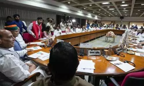 న్యూఢిల్లీ: పశ్చిమ ఆసియాలో కొనసాగుతున్న సంక్షోభంపై చర్చించేందుకు కేంద్ర ప్రభుత్వం అఖిలపక్ష సమావేశాన్ని ఏర్పాటు చేసింది. పార్లమెంట్ భవనంలో రక్షణ శాఖ మంత్రి రాజ్నాథ్ సింగ్ అధ్యక్షత ఈ సమావేశం ప్రారంభమైంది. వివిధ రాజకీయ పార్టీల నాయకులు ఈ సమావేశంలో పాల్గొన్నారు. కేంద్ర ప్రభుత్వం తరఫున హాజరైన కిరణ్ రిజిజు, జేపీ నడ్డా, హర్దీప్ సింగ్ పురీ, విదేశాంగ శాఖ కార్యదర్శి విక్రమ్ మిస్రీ హాజరయ్యారు. పశ్చిమాసియాలో తాజా పరిణామాలు, దేశ సన్నద్ధతపై నాయకులకు వివరించనున్నారు.
