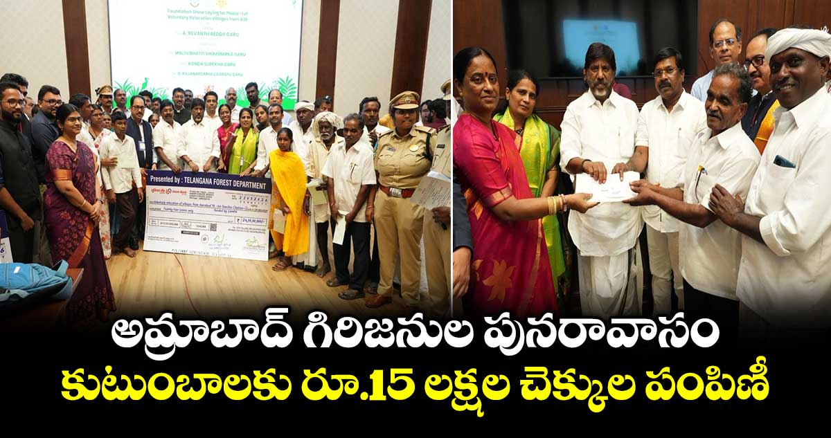 అమ్రాబాద్ టైగర్ రిజర్వ్లో నివసిస్తున్న గిరిజన కుటుంబాల అభివృద్ధి, అటవీ, వన్యప్రాణి సంరక్షణను సమన్వయం చేస్తూ రాష్ట్ర ప్రభుత్వం కీలక నిర్ణయం తీసుకుంది. గిరిజన గ్రామాలకు చెందిన కుటుంబాలకు పునరావాసం కల్పించడంలో కీలక ముందడుగు పడింది. మొదటి దశలో నాలుగు గ్రామాలకు చెందిన మొత్తం 417 కుటుంబాలకు పునరావాసం కల్పించనున్నారు. అందులో భాగంగా 2026 మార్చి 25న చెక్కుల పంపిణీ చేశారు.