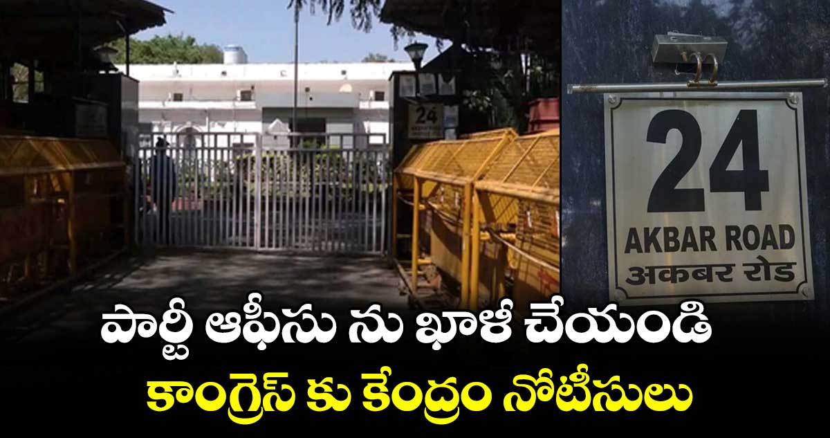 న్యూఢిల్లీ: ఢిల్లీలోని 24, అక్బర్ రోడ్లోని కాంగ్రెస్ పార్టీ ప్రధాన కార్యాలయాన్ని శనివారంలోగా ఖాళీ చేయాలని కేంద్ర ప్రభుత్వం ఆదేశించింది. అంతేకాకుండా 5 రైసినా రోడ్లో ఉన్న ఇండియన్ యూత్ కాంగ్రెస్ కార్యాలయాన్ని కూడా వెకెట్ చేయాలని నోటీసులు ఇచ్చింది. కేంద్ర ప్రభుత్వ ఆదేశాలపై కాంగ్రెస్ పార్టీ మండిపడింది. ప్రభుత్వ ఆదేశాలపై కోర్టుకెళ్లాలని నిర్ణయించింది.