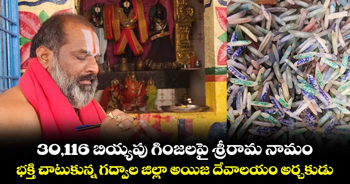 16 ఏండ్లుగా ఆనవాయితీగా వస్తున్నట్లుగానే, ఈ ఏడాది కూడా 45 రోజుల పాటు నిష్టతో 30,116 బియ్యపు గింజలపై శ్రీరామ నామాన్ని లిఖించారు. ఈ విశిష్టమైన బియ్యపు గింజలను ఈ నెల 27న స్థానికంగా నిర్వహించనున్న శ్రీరామనవమి వేడుకల్లో సీతారాముల కల్యాణ తలంబ్రాలుగా వినియోగించనున్నట్లు ఆయన తెలిపారు.