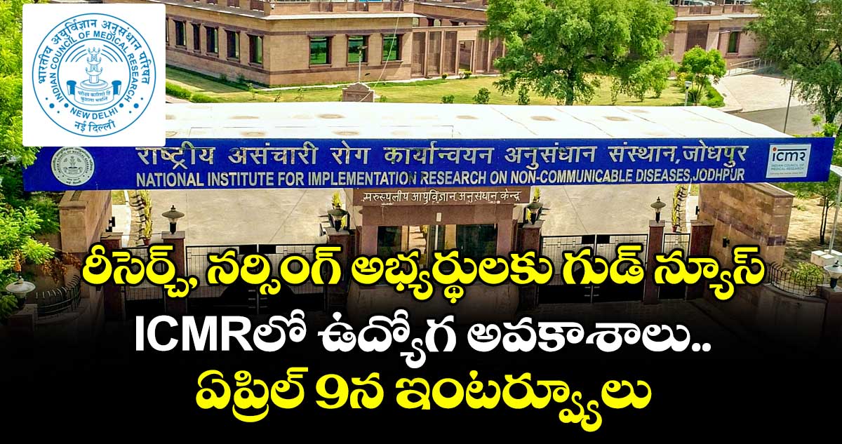 ఐసీఎంఆర్- నేషనల్ ఇన్స్టిట్యూట్ ఫర్ ఇంప్లిమెంటేషన్ రీసెర్చ్ ఆన్ నాన్-కమ్యూనికేబుల్ డిసీజెస్ (ఐసీఎంఆర్–ఎన్ఐఐఆర్ఎన్సీడీ) ప్రాజెక్ట్ రీసెర్చ్ సైంటిస్ట్- II, ప్రాజెక్ట్ నర్స్-–III, ప్రాజెక్ట్ టెక్నికల్ సపోర్ట్-–III పోస్టుల భర్తీకి నోటిఫికేషన్ విడుదల చేసింది.