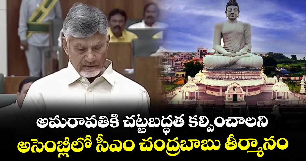 అమరావతి: ఆంధ్రప్రదేశ్ రాజధాని అమరావతికి చట్టబద్ధత కల్పించాలని కోరుతూ సీఎం చంద్రబాబు అసెంబ్లీలో తీర్మానం ప్రవేశపెట్టారు. ఏపీ రాజధానిగా అమరావతికి చట్టబద్ధత కల్పించాలని కేంద్రాన్ని కోరేందుకు శనివారం (మార్చి 28) ఏపీ అసెంబ్లీ ప్రత్యేకంగా సమావేశమైంది. ఈ సమావేశంలో సీఎం చంద్రబాబు అమరావతికి చట్టబద్ధత కల్పించాలని కోరుతూ తీర్మానం ప్రవేశపెట్టారు. విభజన చట్టం సెక్షన్ 5లోని సబ్సెక్షన్ 2లో ఎట్ అమరావతి పదాన్ని చేర్చాలని తీర్మానంలో ప్రతిపాదించారు.