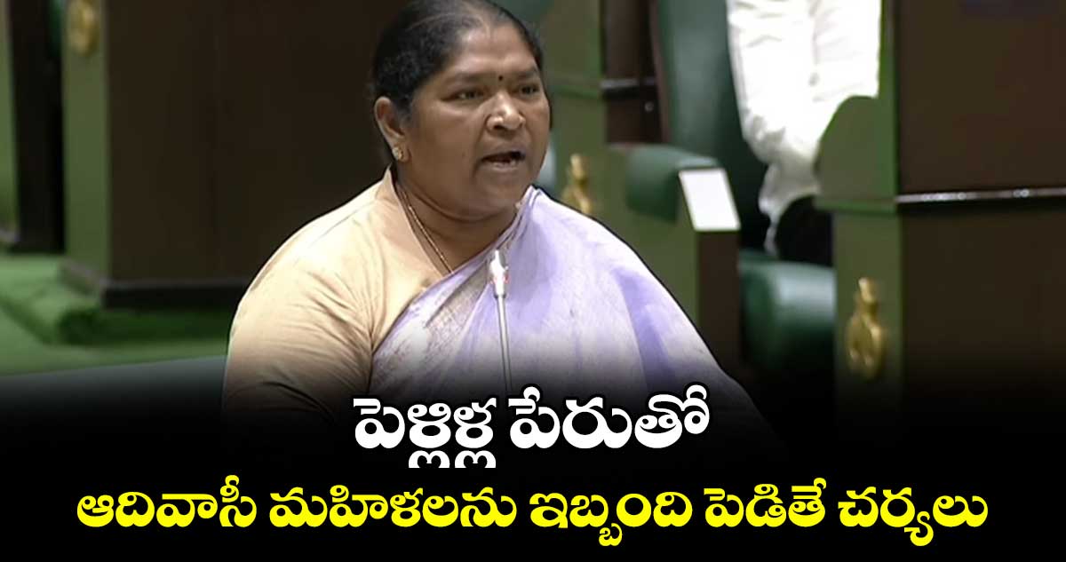 పెళ్లిళ్ల పేరుతో ఆదివాసీ మహిళలను ఇబ్బంది పెడితే చర్యలు తీసుకుంటామని మంత్రి సీతక్క అన్నారు. అసెంబ్లీలో మాట్లాడిన ఆమె.. గత ప్రభుత్వం గ్రామాలను పట్టించుకోలేదన్నారు. కాంగ్రెస్ పాలనపై బీఆర్ఎస్ తప్పుడు ప్రచారం చేస్తోందన్నారు.