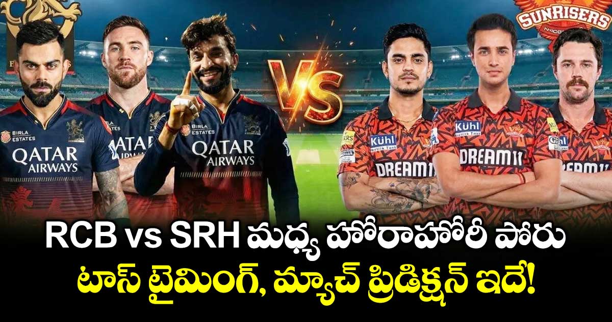 ఆర్సీబీ వర్సెస్ ఎస్ఆర్హెచ్ మధ్య మ్యాచ్ బెంగళూరులోని చిన్నస్వామి స్టేడియంలో జరుగుతుంది.