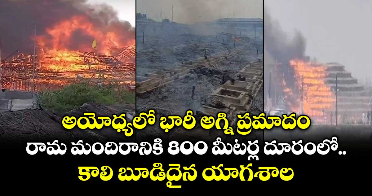 అయోధ్య: అయోధ్యలో భారీ అగ్ని ప్రమాదం జరిగింది. అయోధ్య రామ మందిరానికి సరిగ్గా 800 మీటర్ల దూరంలో యాగం జరిగిన యాగ శాలలో అగ్ని ప్రమాదం జరిగింది. యాగ నిమిత్తం వేసిన పందిరి మొత్తం మంటల్లో తగలబడిపోయింది. దాదాపు ఒక ఎకరంలో ఈ యాగం నిమిత్తం పందిర్లు వేశారు. ఈ యాగ శాల ఉత్తరప్రదేశ్ రవాణా శాఖ మంత్రి దయశంకర్ సింగ్కు చెందినదిగా పోలీసులు తెలిపారు. శనివారం మధ్యాహ్నం 12 గంటల సమయంలో ఈ ఘటన జరిగింది. తొమ్మిది రోజులుగా లక్ష్మీ నారాయణ మహా యజ్ఞం ఈ యాగ శాలలో జరుగుతుంది.