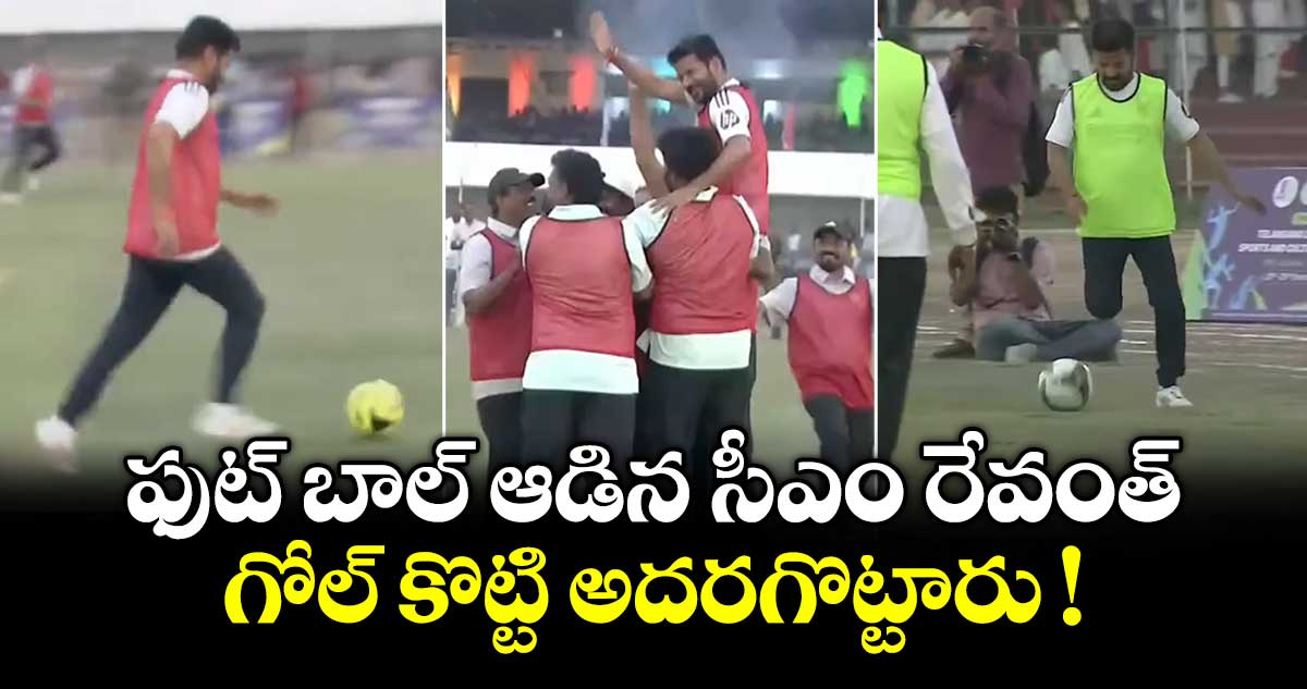 హైదరాబాద్: తెలంగాణ సీఎం రేవంత్ రెడ్డి మరోసారి ఫుట్ బాల్ ఆడారు. గోల్ కూడా కొట్టారు. ఎల్బీ స్టేడియంలో జరిగిన శాసనసభ్యుల క్రీడోత్సవాల్లో ఆయన ఫుట్ బాల్ ఆడారు. ఎమ్మెల్యేలు, ఎమ్మెల్సీలకు ఆటల పోటీలు జరుగుతున్న సంగతి తెలిసిందే. మెస్సీ పర్యటన సమయంలో కూడా సీఎం రేవంత్ ఫుట్ బాల్ ఆడిన విషయం విదితమే.