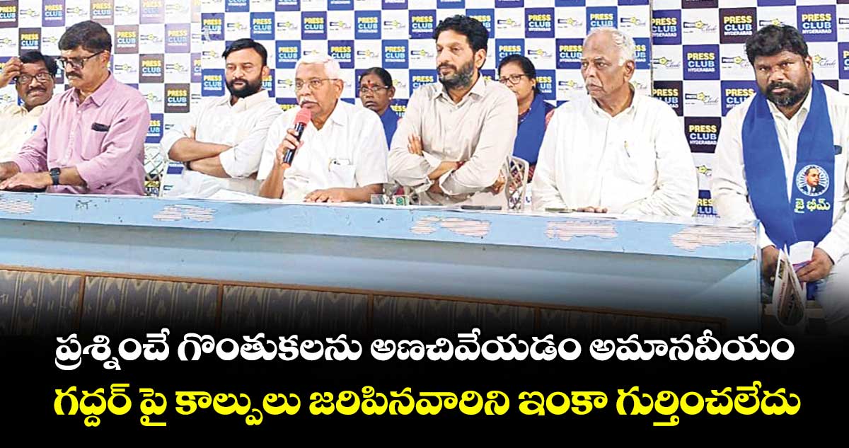 పంజాగుట్ట, వెలుగు: సమాజంలో ప్రశ్నించే గొంతుకలను అణచివేయడం అమానవీయమని తెలంగాణ జన సమితి అధ్యక్షుడు ప్రొఫెసర్ కోదండరాం అన్నారు. ప్రజా గొంతుక గద్దర్ పై కాల్పులు జరిపిన నిందితులను నేటికీ గుర్తించకపోవడం విడ్డూరమని ఆయన విమర్శించారు. శనివారం సోమాజిగూడ ప్రెస్ క్లబ్లో గద్దర్ ఫౌండేషన్ ఆధ్వర్యంలో నిర్వహించిన సమావేశంలో ఆయన మాట్లాడారు. ప్రజాస్వామ్యంలో ప్రశ్నించే వారు లేకుంటే పాలించేవారిదే రాజ్యమవుతుందన్నారు. ఈ సందర్భంగా గద్దర్ ఫౌండేషన్ వ్యవస్థాపక కార్యదర్శి జీవీ సూర్యకిరణ్ మాట్లాడుతూ.. ఏప్రిల్ 6న ‘ప్రశ్నించే గొంతుకలు సాధించిన విజయాలు’ అనే థీమ్తో సుందరయ్య విజ్ఞాన కేంద్రంలో ప్రత్యేక సమావేశం నిర్వహించనున్నట్లు తెలిపారు.