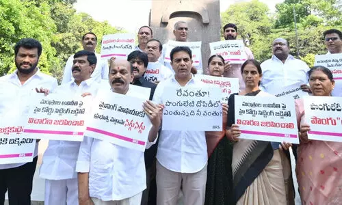 హైదరాబాద్: ఆదివారం అసెంబ్లీ సమావేశాలు ప్రారంభమైన కొద్దిసేపటికే సభలో గందరగోళం నెలకొంది. రాఘవ కన్స్ట్రక్షన్స్ వ్యవహారంపై హౌస్ కమిటీ వేయడంతో పాటు సిట్టింగ్ జడ్జీతో విచారణ జరిపించాలని బిఆర్ఎస్ ఎంఎల్ఎలు డిమాండ్ చేశారు. ఈ వ్యవహారంలో భాగంగా ఉన్న మంత్రి పొంగులేటి శ్రీనివాస్ రెడ్డిని బర్తరఫ్ చేయాలని కోరారు. బిఆర్ఎస్ సభ్యులు నినాదాల మధ్య న్యాయవాదులు రక్షణ, పంచాయతీ రాజ్ చట్ట సవరణ బిల్లులను ప్రవేశ పెట్టారు. బిఆర్ఎస్ సభ్యులు స్పీకర్ పోడియం వద్దకు దూసుకొచ్చారు. వెంటనే మార్షల్స్ వారిని అడ్డుకున్నారు. ఎటువంటి చర్చ లేకుండానే రెండు బిల్లులు ఆమోదించడం సరికాదని ప్రతిపక్షాలు ఆగ్రహం వ్యక్తం చేస్తున్నాయి. రాఘవ కన్స్ట్రక్షన్ వ్యవహారంపై హౌస్ కమిటీ వేయాలని గన్ పార్క్ దగ్గర బిఆర్ఎస్ ఎమ్మెల్యేలతో కలిసి ప్లకార్డులతో కెటిఆర్ నిరసన తెలిపారు. ఈ సందర్భంగా కెటిఆర్ మీడియాతో మాట్లాడారు. అక్రమ మైనింగ్కు పాల్పడుతూ ప్రభుత్వ ఖజానాకు గండికొడుతున్న మంత్రి పొంగులేటి శ్రీనివాస్ రెడ్డిపై ప్రభుత్వం తక్షణమే విచారణ చేపట్టి, కఠిన చర్యలు తీసుకోవాలన్నారు. పొంగులేటి అవినీతి సంపాదనలో సిఎం రేవంత్ కూడా భాగం ఉందని ఆరోపణలు చేశారు. అవినీతికి పాల్పడుతున్న సంస్థపై ఎందుకు చర్యలు తీసుకోవడం లేదని ప్రశ్నించారు. మంత్రి పదవి నుంచి పొంగులేటి వెంటనే తొలగించాలని కెటిఆర్ డిమాండ్ చేశారు. రాఘవ కన్స్ట్రక్షన్స్ వ్యవహారంపై సిఐడి విచారణకు ప్రభుత్వం ఆదేశించిన విషయం తెలిసిందే.
