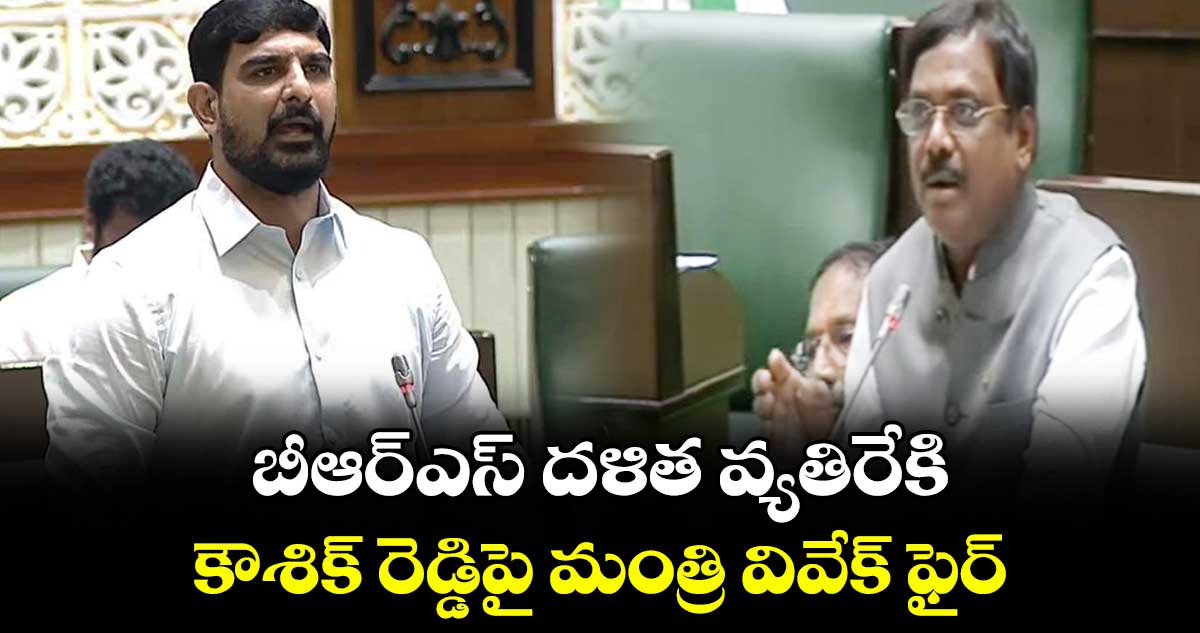 హైదరాబాద్: బీఆర్ఎస్ ఎమ్మెల్యే పాడి కౌశిక్ రెడ్డి వ్యవహరం అసెంబ్లీలో తీవ్ర దుమారం రేపింది. ఎమ్మెల్యే కడియం శ్రీహరి పట్ల కౌశిక్ రెడ్డి అనుచితంగా ప్రవర్తించాడని కాంగ్రెస్ సభ్యులు ఫైర్ అయ్యారు. అసెంబ్లీ సాక్షిగా దళిత ఎమ్మెల్యేను తుపాకీతో కాల్చి చంపేస్తానని కౌశిక్ రెడ్డి బెదిరించాడని ఆగ్రహం వ్యక్తం చేశారు. ఈ క్రమంలో కౌశిక్ రెడ్డి తీరుపై మంత్రి వివేక్ వెంకటస్వామి ఫైర్ అయ్యారు.