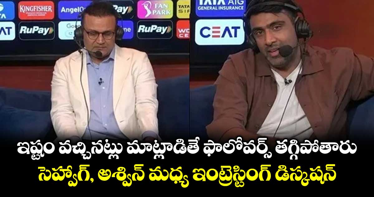 Sehwag vs Ashwin: ఇండియన్ ప్రీమియర్ లీగ్ 2026 సీజన్లో భాగంగా రాయల్ ఛాలెంజర్స్ బెంగళూరు(RCB) వర్సెస్ సన్రైజర్స్ హైదరాబాద్(SRH) మధ్య జరిగిన తొలి మ్యాచ్ సందర్భంగా భారత మాజీ క్రికెటర్లు డాషింగ్ ఓపెనర్ వీరేంద్ర సెహ్వాగ్, స్పిన్నర్ రవిచంద్రన్ అశ్విన్ మధ్య సరదా సంభాషణ జరిగింది. ఈ మ్యాచ్తో హిందీ కామెంటేటర్గా అశ్విన్ ఎంట్రీ ఇచ్చాడు. కొత్తగా హిందీ కామెంట్రీ ప్యానెల్లో చేరిన అశ్విన్కు సీనియర్గా సెహ్వాగ్ కొన్ని కీలకమైన సూచనలు జారీ చేశాడు.