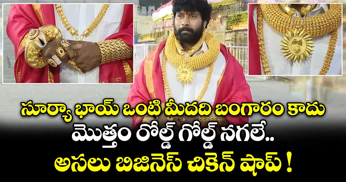 హైదరాబాద్: బంగారం ధరలు భగ్గుమంటున్నాయి. మధ్య తరగతి కుటుంబాలకు తులం బంగారం కొనాలంటేనే తలకు మించిన భారంగా మారింది. అలాంటి.. ఈరోజుల్లో ఒంటి నిండా నగలు దిగేసుకుని.. కళ్లు మిరుమిట్లు గొలిపే కాంతులతో గోల్డ్ మ్యాన్గా సూర్యా భాయ్ అనే వ్యక్తి పాపులర్ అయిన సంగతి తెలిసిందే. హైదరాబాద్ ఓల్డ్ సిటీకి చెందిన ఈ సూర్యా భాయ్ ఈ మధ్య తిరుమల శ్రీవారిని దర్శించుకుని ఆలయం వెలుపల మీడియాకు ఒంటి నిండా బంగారంతో కనిపించిన వీడియోలు సోషల్ మీడియాలో వైరల్ కావడం గమనార్హం.