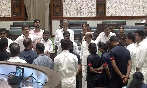 శాసనసభలో రెండో రోజు ఆదివారం కూడా మంత్రి పొంగులేటి శ్రీనివాస్ రెడ్డికి చెందిన మైనింగ్ అక్రమాలపై సభా కమిటీ వేయాలని డిమాండ్ చేస్తూ సభ ప్రారంభం నుంచి నిరసన వ్యక్తం చేశారు. దీంతో అసెంబ్లీ సమావేశాలకు ప్రతిపక్ష ఎమ్మెల్యేల వైఖరితో తీవ్ర ఆటంకం ఏర్పడింది. ముఖ్యమంత్రి రేవంత్రెడ్డి మాట్లాడుతూ బీఆర్ఎస్ సభ్యులు తీరు మార్చుకొని బిల్లులపై చర్చకు సహకరించాలని లేదంటే సస్పెన్షన్ ఎదుర్కొవాలని సూచించారు. అయినప్పటికి బీఆర్ఎస్ ఎమ్మెల్యే స్పీకర్ పోడియాన్ని చుట్టుముట్టేందుకు వెళ్లేందుఎకు ప్రయత్నించి గందరగోళం సృష్టించారు. అప్రమత్తమైన మార్షల్స్ బీఆర్ఎస్ సభ్యులను అడ్డుకున్నారు. ఈ క్రమంలో సభలో ఒక్కసారిగా గందరగోళ పరిస్థితి నెలకొంది. దాదాపు అర్ధగంట ఇదే పరిస్థితి కొనసాగగా బీఆర్ఎస్ సభ్యుల తీరుపై శాసనసభ వ్యవహారాల శాఖ మంత్రి శ్రీధర్ బాబు బీఆర్ఎస్ సభ్యులను రెండు రోజుల పాటు సభ నుంచి సస్పెండ్ చేయాలని ప్రతిపాదించారు. అనంతరం స్పీకర్ బడ్జెట్ పై చర్చకు అడ్డు పడుతున్నందుకు బీఆర్ఎస్ ఎమ్మెల్యేలను సభ నుంచి సస్పెండ్ చేశారు.