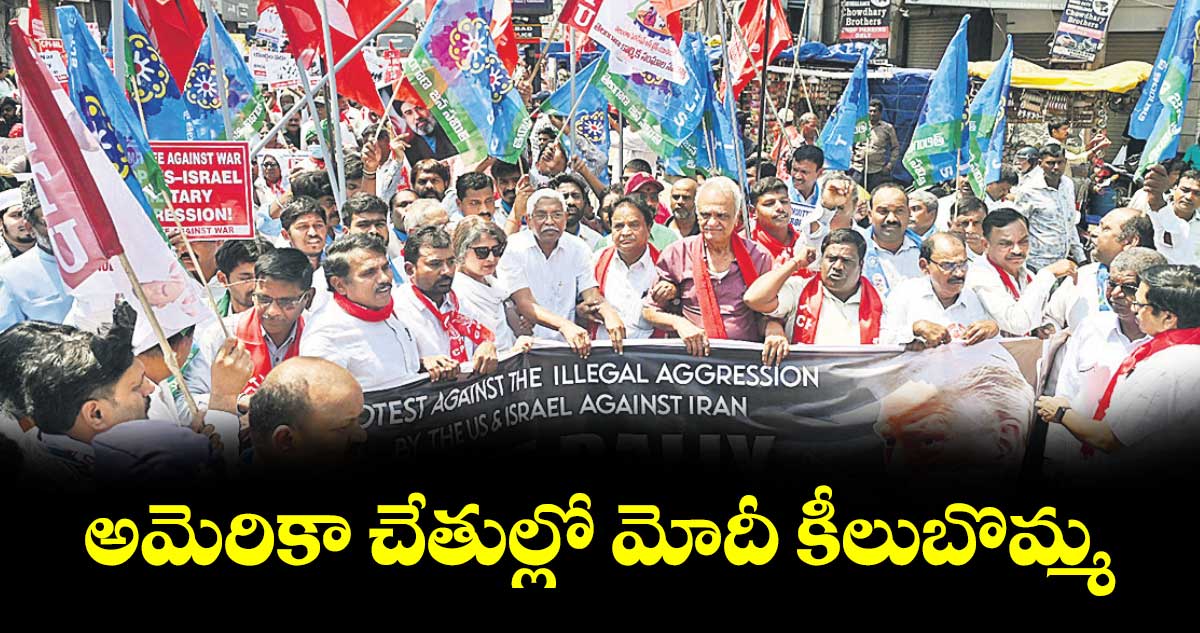 హైదరాబాద్, వెలుగు: అమెరికా చేతిలో ప్రధాని మోదీ కీలుబొమ్మగా మారారని, ఆయన విశ్వగురువునని చెప్పుకోవడం సిగ్గుచేటని వామపక్ష, ప్రజా సంఘాల నేతలు విమర్శించారు. ఇరాన్పై అమెరికా, ఇజ్రాయెల్ దేశాలు చేస్తున్న దాడులను ఆపేందుకు చర్యలు తీసుకోవాలని డిమాండ్ చేశారు. ఇరాన్పై అమెరికా, ఇజ్రాయెల్ దేశాల యుద్ధాన్ని నిరసిస్తూ ఆదివారం యుద్ధ వ్యతిరేక కమిటీ ఆధ్వర్యంలో చార్మినార్ నుంచి నాంపల్లి ఎగ్జిబిషన్ గ్రౌండ్ వరకు భారీ ర్యాలీ నిర్వహించారు.