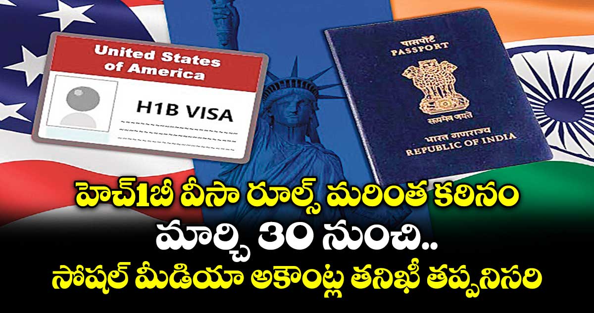 వాషింగ్టన్: వీసా స్క్రీనింగ్ రూల్స్ను అమెరికా మరింత కఠినతరం చేసింది. హెచ్1బీ సహా పలు విభాగాల్లో వీసా కోరుకునే అభ్యర్థులు తన సోషల్ మీడియా అకౌంట్ల వివరాలను వెల్లడించడంతో పాటు పబ్లిక్ మోడ్లో ఉంచడాన్ని తప్పనిసరి చేసింది. ఈ నెల 30 (సోమవారం) నుంచి ఈ రూల్స్ అమల్లోకి రానున్నట్లు అమెరికా స్టేట్ డిపార్ట్మెంట్ ప్రకటించింది. ఇందులో భాగంగా వీసా దరఖాస్తుదారులు సోషల్ మీడియా పోస్టులు, ఆన్లైన్ కార్యకలాపాలు, ఇతర డిజిటల్ రికార్డులను కాన్సులేట్ అధికారులు క్షుణ్నంగా పరిశీలిస్తారు.