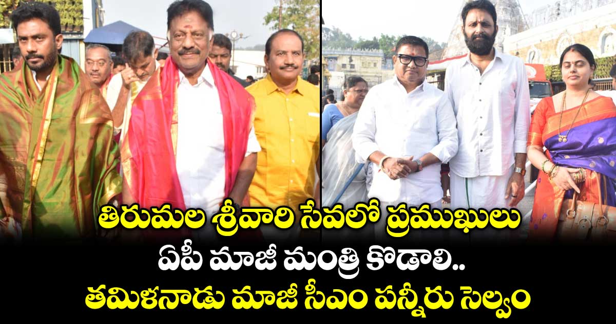 తిరుమల క్షేత్రంలో ప్రముఖులు పర్యటిస్తున్నారు. కలియుగ ప్రత్యక్ష దైవం తిరుమల శ్రీవేంకటేశ్వర స్వామివారిని పలువురు ప్రముఖులు దర్శించుకున్నారు. సోమవారం (మార్చి 30) ఉదయం వీఐపీ విరామ సమయంలో మాజీ మంత్రి కొడాలి నాని, జమ్మూ కాశ్మీర్ ఎలక్షన్ కమీషనర్ సంజీవ్ వేరం, మాజీ ముఖ్యమంత్రి ఓ పన్నీరు సెల్వంలు వేర్వేరుగా స్వామి వారి సేవలో పాల్గొని మొక్కులు చెల్లించుకున్నారు. దర్శన అనంతరం ఆలయ రంగనాయకుల మండపంలో పండితులు వేదశీర్వచనం అందించగా… .ఆలయ అధికారులు శ్రీవారి తీర్థప్రసాదాలు అందజేసి పట్టువస్త్రంతో సత్కరించారు