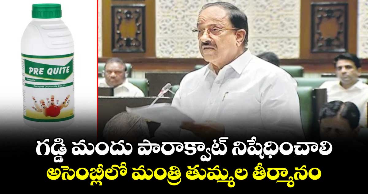 హైదరాబాద్: అసెంబ్లీలో రాష్ట్ర వ్యవసాయ శాఖ మంత్రి తుమ్మల నాగేశ్వరరావు కీలక తీర్మానాన్ని ప్రవేశపెట్టారు. వ్యవసాయంలో విస్తృతంగా వినియోగిస్తున్న పారాక్వాట్ డైక్లోరైడ్ 24% SL అనే ప్రమాదకర గడ్డిమందును తక్షణమే నిషేధించాలని కేంద్ర ప్రభుత్వాన్ని కోరుతూ మంత్రి తీర్మానం ప్రవేశపెట్టారు. ఈ తీర్మానానికి సభ ఏకగ్రీవంగా ఆమోదం తెలిపింది. ఈ సందర్భంగా మంత్రి తుమ్మల మాట్లాడుతూ.. సమాజ, పర్యావరణ ప్రయోజనాలే పరమావధిగా ప్రభుత్వం ఈ తీర్మానం చేసిందని స్పష్టం చేశారు.