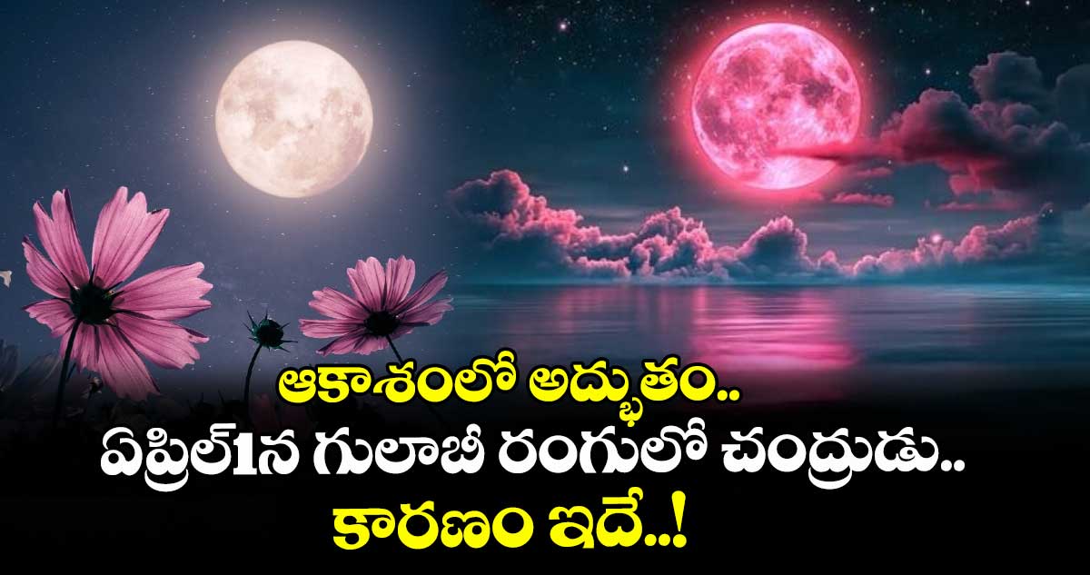 ఆకాశంలో మరో అద్భుత దృశ్యం ఏప్రిల్ 1ఆవిష్కృతం కానుంది. ఎప్పుడూ దగ దగ మెరుస్తూ తెల్లగా కనిపించే చంద్రుడు.. ఆరోజు కొత్త రంగును సంతరించుకోనున్నాడు. చంద్రుడిని సాధారణంగా ఎరుపు, పసుపు, నలుపు చూసి ఉంటాం. ఆ రోజు రాత్రి చంద్రుడు పింక్ కలర్లో కనపడటానికి కారణాల గురించి ఈ స్టోరీలో తెలుసుకుందాం.