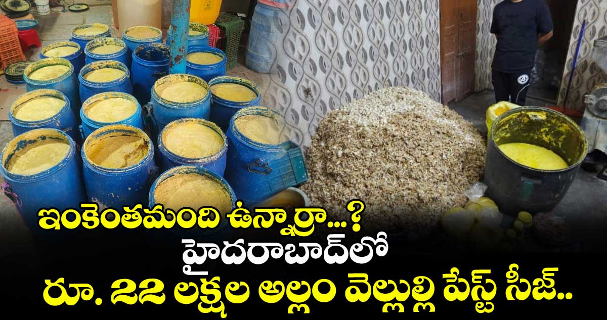ఈ దాడిలో రూ. 22 లక్షల రూపాయల విలువైన 4 వేల 32 కిలోల అల్లం వెల్లుల్లి పేస్ట్, 6 వేల కిలోల నాణ్యత లేని వెల్లుల్లి ని సీజ్ చేశారు అధికారులు. 210 కిలోల నాణ్యత లేని అల్లం, వెల్లుల్లి పొట్టు సంచులతో పాటు 250 కిలోల ఉప్పు, ఎసిటిక్ యాసిడ్, 5 గ్రైండర్లను స్వాధీనం చేసుకున్నట్లు పోలీసులు.