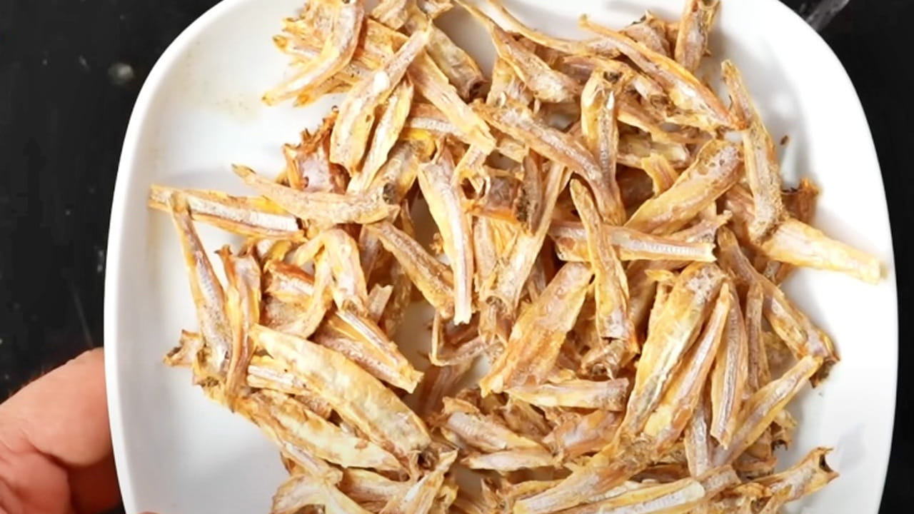 తయారీ విధానం : ముందుగా ఎండు చేపలు తీసుకోవాలి వాటి తలలు తీసి వేసి మంచిగా వేయించుకోవాలి. తర్వాత వీటిని మరిగే నీటిలో వేసి, తీసి చల్లటి నీటిలో వేసి, బాగా కలుపుకోవాలి. దీని వల అందులో ఉన్న ఇసుక రేణువులు అన్నీ పోతాయి.