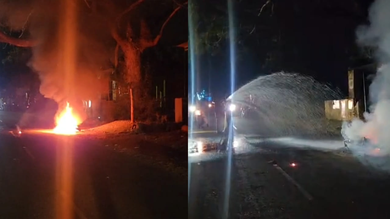 పార్వతీపురం మన్యం జిల్లా గుమ్మలక్ష్మీపురంలో పెను ప్రమాదం తృటిలో తప్పింది. పెట్రోల్ బంక్ వద్ద ఒక యువకుడు తన బైక్కు బ్యాటరీ మారుస్తుండగా అకస్మాత్తుగా షార్ట్ సర్క్యూట్ జరిగింది. చూస్తుండగానే బైక్ నుండి మంటలు చెలరేగాయి. మొదట చిన్నగా ప్రారంభమైన మంటలు, క్షణాల్లోనే వాహనం అంతటా వ్యాపించి పెద్ద ఎత్తున ఎగిసిపడ్డాయి. బైక్ పూర్తిగా మంటల్లో చిక్కుకోవడంతో స్థానికులు భయంతో పరుగులు తీశారు. ఈ ప్రమాదం జరిగిన ప్రదేశానికి అతి సమీపంలోనే పెట్రోల్ బంక్ ఉండటంతో అందరిలోనూ వణుకు మొదలైంది. మంటలు గనుక బంక్కు వ్యాపిస్తే ఊహించని స్థాయిలో ప్రాణ, ఆస్తి నష్టం సంభవించే అవకాశం ఉండేది. అయితే పెట్రోల్ బంక్ సిబ్బంది ఏమాత్రం ఆలస్యం చేయకుండా అత్యంత చాకచక్యంగా వ్యవహరించారు. ప్రాణాలకు తెగించి మంటలు అంటుకున్న బైక్ను బంక్కు దూరంగా తరలించారు. వారి సమయస్ఫూర్తి వల్ల మంటలు బంక్కు వ్యాపించకుండా ఆగిపోయాయి. దీంతో ఒక భారీ అగ్నిప్రమాదం తప్పింది.