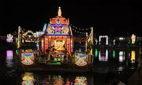 సాయంత్రం 6.30 గంటలకు శ్రీసీతారామలక్ష్మణులు ఆలయం నుండి ఊరేగింపుగా శ్రీరామచంద్ర పుష్కరిణికి చేరుకున్నారు. విద్యుద్దీపాలతో అందంగా అలంకరించిన తెప్పపై శ్రీ సీతాలక్ష్మణ సమేత శ్రీ కోదండరామస్వామివారు ఆశీనులై పుష్కరిణిలో 7 చుట్లు తిరిగి భక్తులకు కనువిందు చేశారు. ఈ కార్యక్రమంలో ఆలయ డెప్యూటీ ఇఒ నాగరత్న, టెంపుల్ ఇన్స్పెక్టర్ సురేష్, విశేష సంఖ్యలో భక్తులు పాల్గొన్నారు.