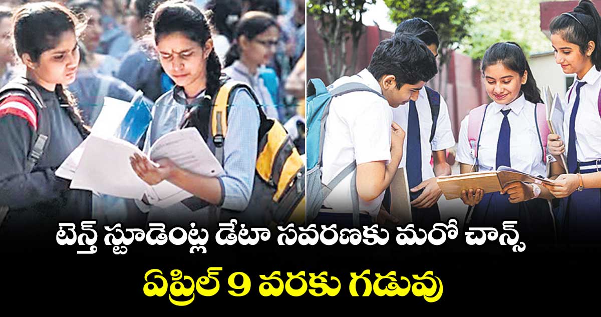 హైదరాబాద్, వెలుగు: రాష్ట్రంలో పదోతరగతి పబ్లిక్ పరీక్షలకు హాజరైన విద్యార్థుల వ్యక్తిగత వివరాల్లో ఏవైనా తప్పులుంటే సరిదిద్దుకునేందుకు విద్యాశాఖ మరో అవకాశం కల్పించింది. విద్యార్థుల డేటా సవరణకు గతంలో ఇచ్చిన గడువును ఈ నెల 9వ తేదీ వరకు పొడిగిస్తూ ప్రభుత్వ పరీక్షల విభాగం డైరెక్టర్ పీవీ.శ్రీహరి మంగళవారం ఉత్తర్వులు జారీ చేశారు. పదోతరగతి పాస్ సర్టిఫికెట్లలో విద్యార్థుల పేరు, తండ్రి పేరు, పుట్టిన తేదీ వంటి వివరాల్లో ఎలాంటి పొరపాట్లు ఉండకూడదనే ఉద్దేశంతో గడువు పెంచినట్లు ఆయన తెలిపారు.