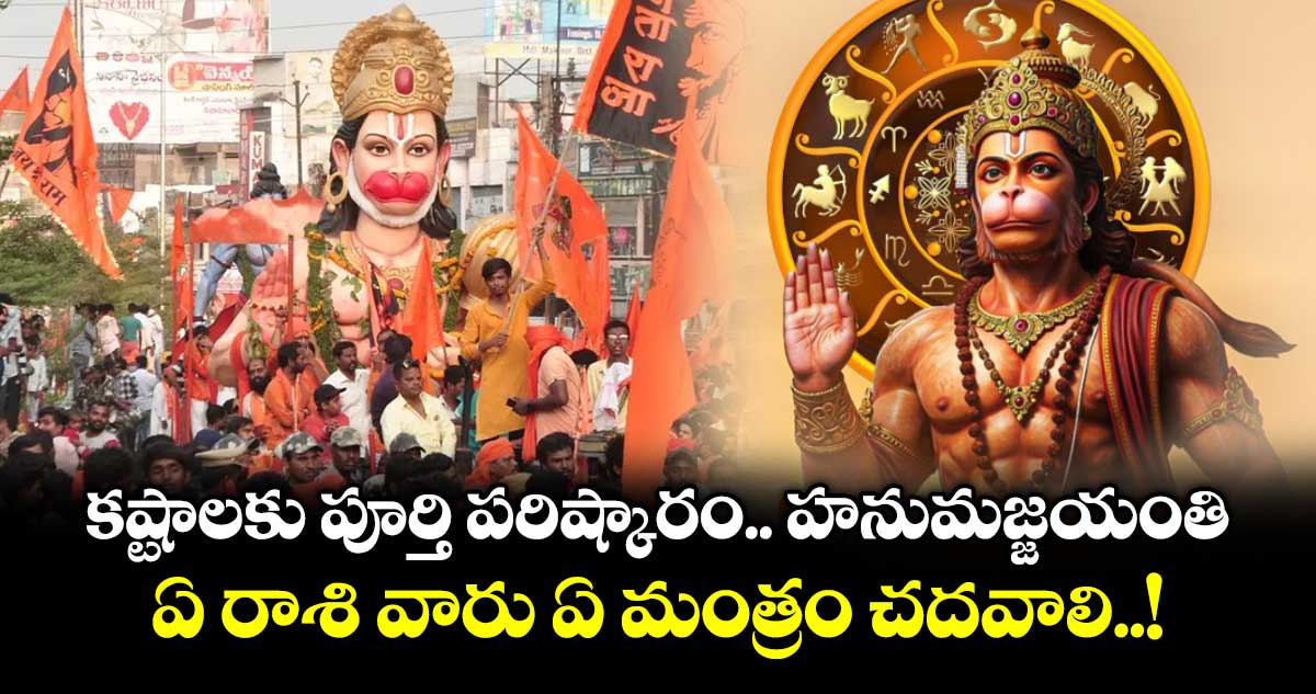 హనుమాన్ జయంతి (ఏప్రిల్ 2) చైత్ర పూర్ణిమ గురువారం రోజున శని, కుజ గ్రహాల ప్రభావం ఎక్కువగా ఉంటుంది .హనుమంతుడు శని దోషాలను నివారిస్తాడు .. కుజుడికి (భూమి పుత్రుడు) ఇష్టమైన దైవం. ఈ పూజ శని-కుజ దోషాలను తొలగిస్తుంది.. జ్యోతిష్యం ప్రకారం, హనుమంతుడి ఆశీస్సులు కావాలనుకునే వారు హనుమాన్ జయంతి రోజున కొన్ని మంత్రాలను పఠించడం వల్ల జీవితంలోని సమస్యల నుంచి ఉపశమనం పొందడంతో పాటు, సకల పాపాల నుంచి విముక్తి పొందుతారని జ్యోతిష్య పండితులు చెబుతున్నారు. ఏప్రిల్ 2 హనుమజ్జయంతి సందర్భంగా 12 రాశుల వారు ఏయే మంత్రాలను చదవాలో ఈ స్టోరీలో తెలుసుకుందాం. . .!