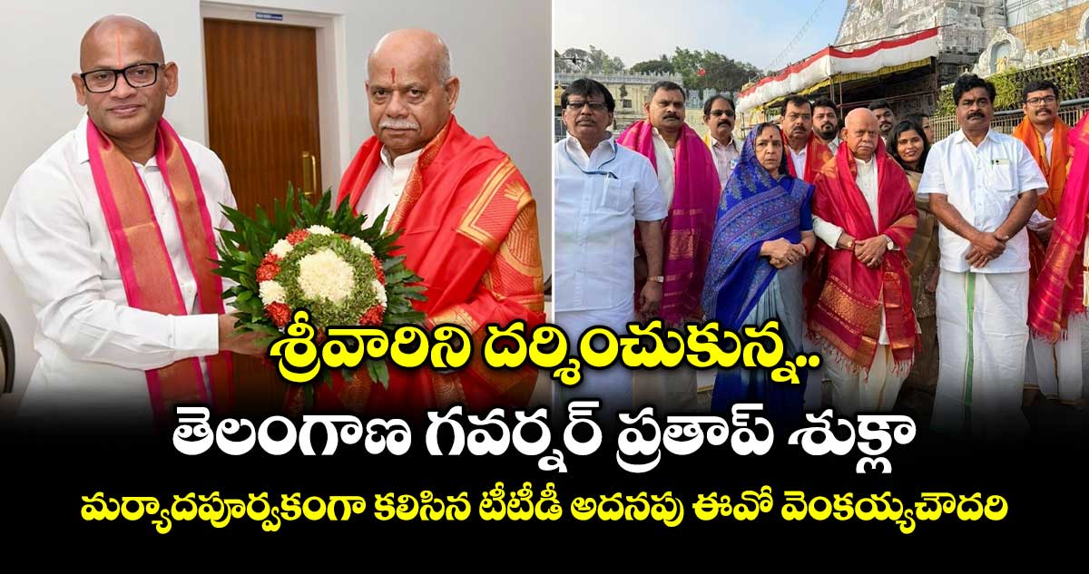 తెలంగాణ గవర్నర్ శివ్ ప్రతాప్ శుక్లా తిరుమల శ్రీవారిని దర్శించుకున్నారు.బుధవారం ( ఏప్రిల్ 1 ) సతీసమేతంగా తిరుమలకు చేరుకున్న ఆయన శ్రీవారిని దర్శించుకున్నారు. అనంతరం అర్చకులు వేదం ఆశీర్వచనాలు అందించగా..తీర్థ ప్రసాదాలు అందజేశారు టీటీడీ అధికారులు.