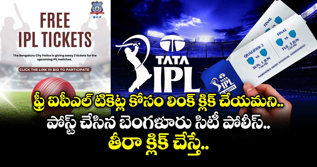 ఐపీఎల్ ఫీవర్ మొదలైంది. ఇప్పటికే నాలుగు మ్యాచ్లు కూడా అయిపోయాయి. ఐపీఎల్ టికెట్ల కోసం అభిమానులు ఆత్రంగా ఎదురుచూస్తున్నారు. డిస్ట్రిక్ట్ యాప్లో ఐపీఎల్ టికెట్లు అందుబాటులో ఉంచిన నిమిషాల వ్యవధిలోనే సేల్ అయిపోతున్నాయి. ఈ క్రమంలో.. ఐపీఎల్ టికెట్లు ఫ్రీగా ఇస్తామని ఏకంగా బెంగళూరు సిటీ పోలీస్ ‘ఎక్స్’లో పోస్ట్ కనిపిస్తే అభిమానులు ఊరుకుంటారా..? బెంగళూరు సిటీ పోలీస్ ఈ లింక్ క్లిక్ చేస్తే రెండు టికెట్లు ఫ్రీగా ఇస్తామని పోస్ట్ పెడితే అభిమానులు ఆగుతారా..? అస్సలు ఆగరు. ఈ లింక్పై క్లిక్ చేసిన అభిమానులందరినీ బెంగళూరు సిటీ పోలీసులు ఏప్రిల్ 1 సాక్షిగా ఫూల్స్ను చేశారు.