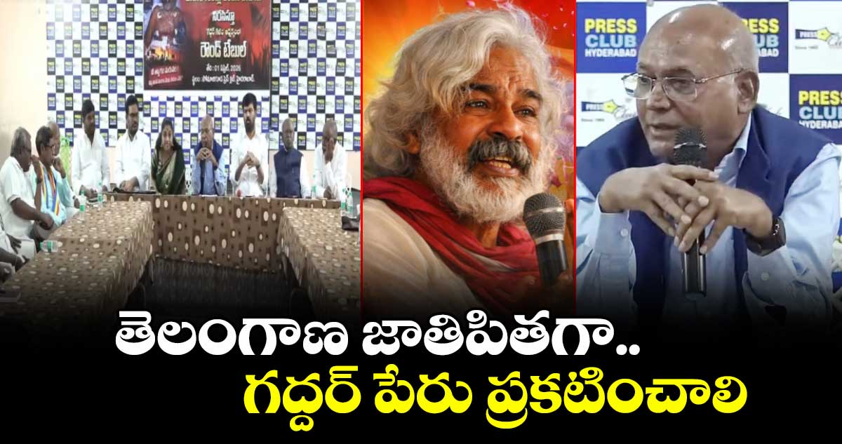 తెలంగాణ జాతిపితగా గద్దర్ పేరు ప్రకటించాలని సామాజికి వేత్త, ప్రొఫెసర్ కంచె ఐలయ్య డిమాండ్ చేశారు. హైదరాబాద్ గద్దర్ గళం ఆధ్వర్యంలో రౌండ్ టేబుల్ సమావేశం జరిగింది. తెలంగాణ ఉద్యమకారులు, మేథావులు, కవులు, కళాకారులు హాజరయ్యారు. ఈ సందర్భంగా గద్దర్ ను ప్రభుత్వం తెలంగాణ జాతిపితగా గుర్తించాలని రౌండ్ టేబుల్ సమావేశం తీర్మానం చేసింది.