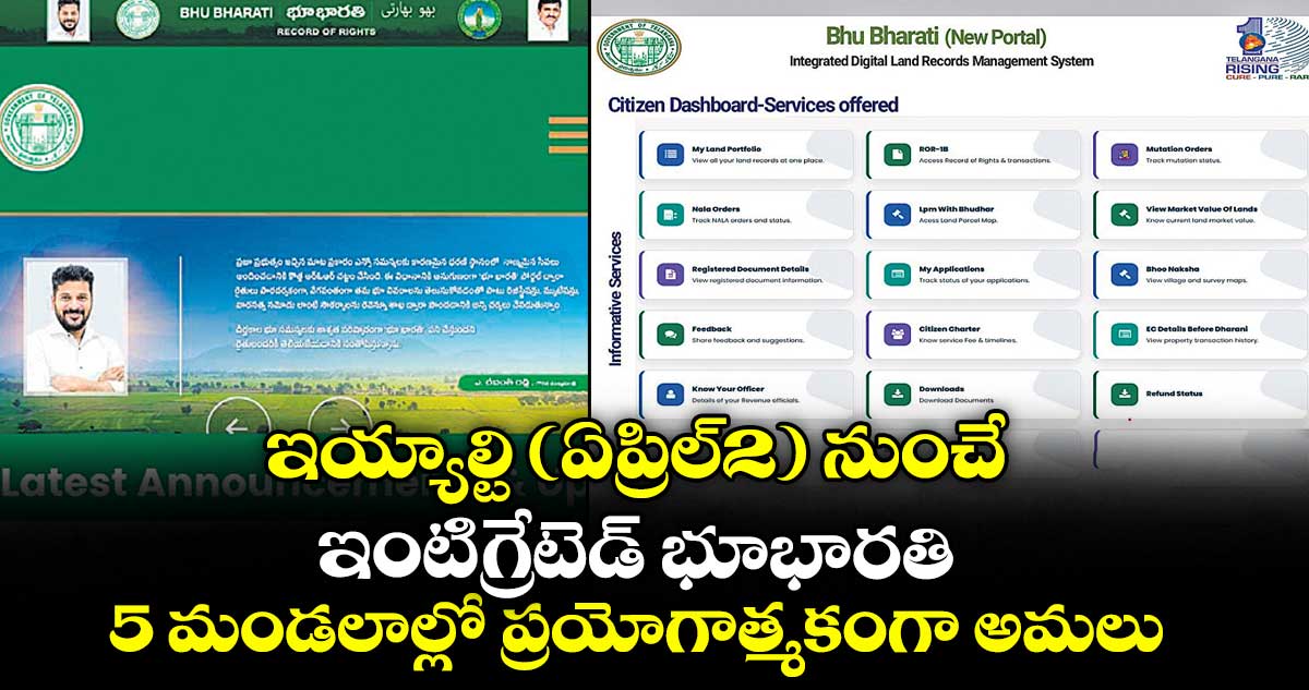 బుధవారం కేరళ పర్యటనలో ఉన్న మంత్రి పొంగులేటి శ్రీనివాస్రెడ్డి.. భూభారతి పోర్టల్ ప్రారంభానికి సంబంధించి రెవెన్యూ అధికారులతో టెలికాన్ఫరెన్స్ ద్వారా మాట్లాడారు. ఈ ఇంటిగ్రేటెడ్ భూభారతి పోర్టల్ను రైతు కోణంలో రూపొందించామని చెప్పారు. రైతులకు పారదర్శకంగా, సులభతరమైన సేవలు అందించడానికి ల్యాండ్, సర్వే, రిజిస్ట్రేషన్ విభాగాలను ఒకే గొడుగు కిందకు తెస్తూ ఇంటిగ్రేటెడ్ భూభారతి పోర్టల్ను తయారు చేసినట్టు తెలిపారు. ఈ పోర్టల్ను ఈ నెల 2వ తేదీ నుంచి 5 మండలాల్లో ప్రయోగాత్మకంగా ప్రారంభించి భూ వివాదాల పరిష్కారానికి తొలి అడుగు వేయబోతున్నామని వెల్లడించారు. ఇక్కడ వచ్చే ఫలితాలకు తగ్గట్టుగా అవసరమైన మార్పులు చేర్పులు చేసి భవిష్యత్తులో రాష్ట్రవ్యాప్తంగా ముందుకెళ్లాలని నిర్ణయించినట్లు తెలిపారు.