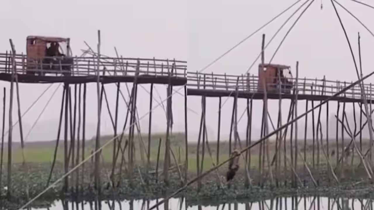 సోషల్ మీడియాలో వైరల్ అవుతున్న ఒక వీడియోలో, నదిపై వెదురు, కర్రలతో నిర్మించిన ఒక ఇరుకైన తాత్కాలిక వంతెన కనిపించింది. ఒక ఈ-ఆటో రిక్షా డ్రైవర్ ఈ వంతెనపై ఆగకుండా వేగంగా వెళ్తున్నాడు. ఈ వీడియోను @Babaxwale అనే అకౌంట్ ‘X’ అనే సోషల్ మీడియా ప్లాట్‌ఫామ్‌లో షేర్ చేశారు. ఆ వంతెన చాలా శిథిలావస్థలో ఉన్నట్లు స్పష్టంగా కనిపిస్తోంది. చెక్క, వెదురుతో కట్టిన ఈ వంతెనపై చిన్న పొరపాటు జరిగినా పెద్ద ప్రమాదం జరగొచ్చు. అయినప్పటికీ, ఆ డ్రైవర్ తన ఈ-రిక్షాతో నిర్భయంగా వంతెనను దాటడం చూసి ప్రజలు ఆశ్చర్యపోతున్నారు. ఈ వీడియో బీహార్‌కు చెందినదని చెబుతున్నారు.