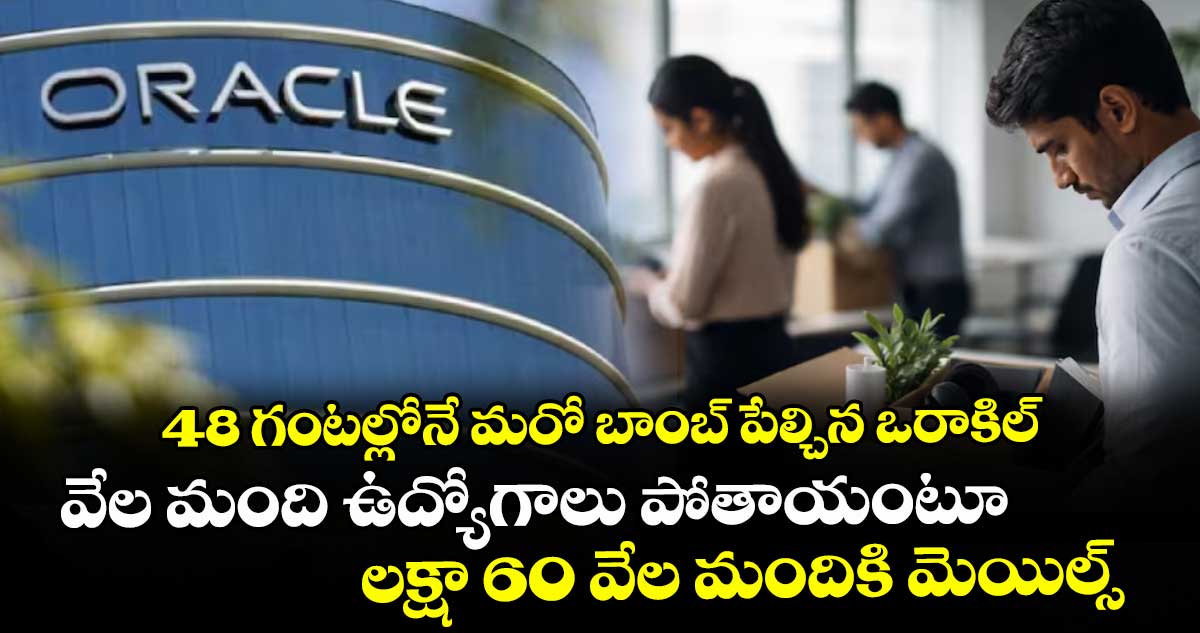 ఒరాకిల్.. ఉద్యోగాలు తీసివేతలో మిరాకిల్స్ చేస్తోంది. ప్రపంచ వ్యాప్తంగా ఒరాకిల్ కంపెనీ కింద ప్రస్తుతం లక్షా 60 వేల మంది ఉద్యోగులు పని చేస్తున్నారు. ఇప్పటికే 30 వేల మందిని తీసేసిన ఒరాకిల్.. 48 గంటలు గడవక ముందే మరో షాకింగ్ న్యూస్ చెప్పింది. 30 వేల మంది ఉద్యోగుల తొలగింపు తర్వాత.. కంపెనీలో మిగిలిన లక్షా 60 వేల మందికి మెయిల్స్ పంపింది కంపెనీ. కంపెనీ మూల ధన వ్యక్తం, ఆర్టిఫిషియల్ ఇంటెలిజెన్స్ ప్రభావం వల్ల మీలో చాలా మంది ఉద్యోగాలు కోల్పోయే అవకాశం ఉంది. మరో విడతలో భాగంగా మరికొన్ని వేల మందిని తొలగించే అవకాశం ఉందంటూ ముందస్తు హెచ్చరికలు జారీ చేసింది. కంపెనీ నుంచి వచ్చిన మెయిల్ చూసిన ఉద్యోగులు.. ఇప్పుడు మరింత ఆందోళనలో ఉన్నారు. ఏ రోజు.. ఏ ఉదయం బ్యాడ్ న్యూస్ వినాల్సి వస్తుందో అనే భయం పట్టుకుంది ఒరాకిల్ ఉద్యోగులకు.