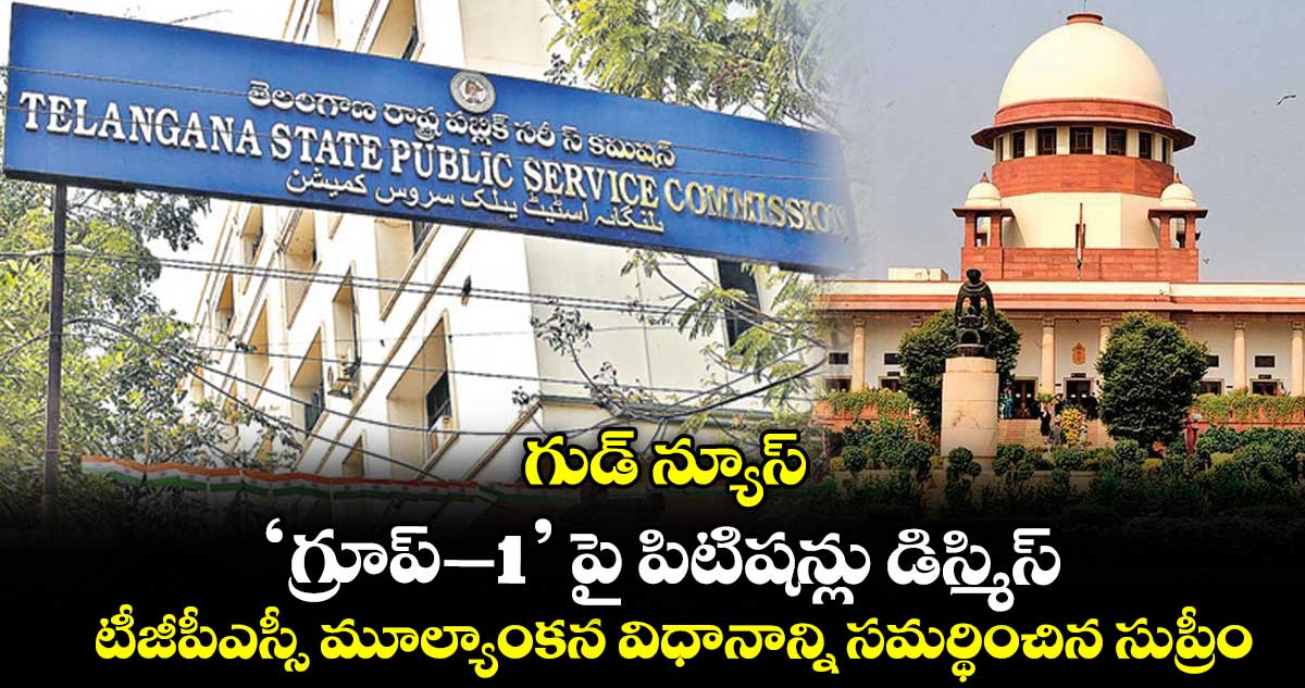 తెలంగాణ గ్రూప్–1 నియామక ప్రక్రియపై నెలకొన్న న్యాయపరమైన సందిగ్ధతకు లైన్ క్లియర్ అయింది. టీజీపీఎస్సీ చేపట్టిన 563 పోస్టుల నియామక ప్రక్రియ చట్టబద్ధమేనని సుప్రీంకోర్టు స్పష్టం చేసింది. ఈ విషయంలో -టీజీపీఎస్సీ మూల్యాంకన విధానాన్ని ధర్మాసనం సమర్థించింది.
