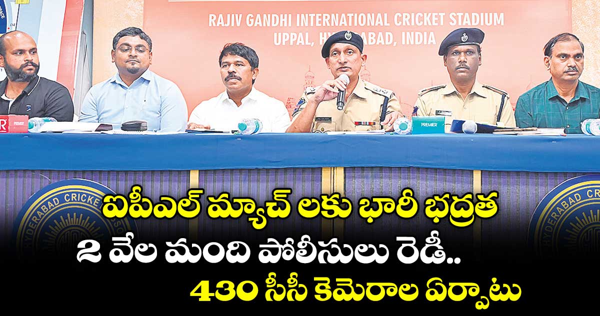 ఉప్పల్/మల్కాజిగిరి, వెలుగు : రాజీవ్ గాంధీ ఇంటర్ నేషనల్క్రికెట్స్టేడియంలో నిర్వహించనున్న ఐపీఎల్ మ్యాచ్ల కోసం పోలీసులు భారీ బందోబస్తు ఏర్పాట్లు చేస్తున్నారు. ఏప్రిల్ 5 నుంచి మే 22 వరకు డే అండ్ నైట్ మ్యాచ్లు జరుగుతున్న నేపథ్యంలో ఉప్పల్డీసీపీ కె. సురేష్ కుమార్గురువారం స్టేడియంలో ప్రెస్ మీట్నిర్వహించి మాట్లాడారు. భద్రత కోసం సుమారు 2 వేల మంది పోలీసు సిబ్బందిని నియమిస్తున్నట్లు తెలిపారు. అలాగే, లా అండ్ ఆర్డర్, ట్రాఫిక్, సెక్యూరిటీ విభాగాలతో పాటు టీఎస్ఎస్పీ, ఏఆర్ దళాలు, మౌంటెడ్ పోలీస్, బాంబ్ డిస్పోజల్, ఇంటెలిజెన్స్, స్పెషల్ ఆపరేషన్ టీంలను మోహరిస్తున్నట్లు వెల్లడించారు.