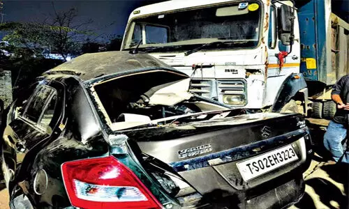 హైదరాబాద్: కరీంనగర్ జిల్లా కేంద్రంలో రోడ్డు ప్రమాదం జరిగింది. కరీంనగర్ - పెద్దపల్లి బైపాస్ లోని బొమ్మకల్ ఫ్లైఓవర్ వద్ద ఆగి ఉన్న లారీని వేగంగా కారు ఢీకొట్టడంతో ఇద్దరు మృతి చెందారు. ఈ ప్రమాదంలో మరో ఇద్దరు గాయపడడంతో ఆస్పత్రికి తరలించారు. ఒకరి పరిస్థితి విషమంగా ఉందని ఆస్పత్రి వర్గాలు వెల్లడించాయి. పోలీసులు ఘటనా స్థలానికి చేరుకొని కేసు నమోదు చేసి దర్యాప్తు చేస్తున్నారు. ట్రాఫిక్ అంతరాయం లేకుండా క్రేన్ సహాయంతో వాహనాలను పక్కకు తొలగించారు.