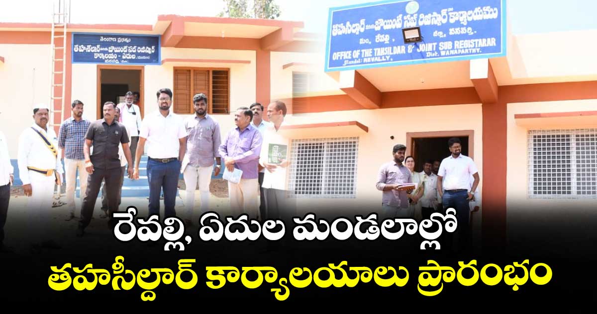 రేవల్లి, వెలుగు : వనపర్తి జిల్లా రేవల్లి, ఏదుల మండల కేంద్రాల్లో రూ. 64 లక్షల కలెక్టర్ ప్రత్యేక నిధులతో నిర్మించిన నూతన తహసీల్దార్ కార్యాలయ భవనాలను ఎమ్మెల్యే తూడి మేఘారెడ్డి, కలెక్టర్ ఆదర్శ్ సురభి గురువారం ప్రారంభించారు. ఈ సందర్భంగా ఏదులలో నిర్వహించిన గ్రామసభలో ఎమ్మెల్యే మాట్లాడుతూ పేదల సంక్షేమమే ధ్యేయంగా ప్రజా ప్రభుత్వం ముందుకు సాగుతోందన్నారు.
