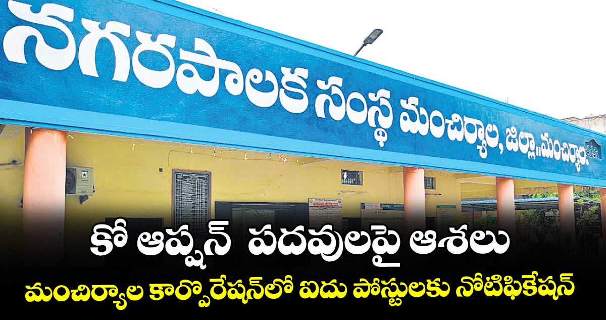 మిగతా మున్సిపాలిటీల్లో నోటిఫికేషన్ ఎప్పుడు వస్తుందా? అని లీడర్లు ఎదురుచూస్తున్నారు. మున్సిపల్ ఎన్నికలు జరిగి రెండు నెలలు కావస్తున్నా కో ఆప్షన్ పదవుల భర్తీలో జాప్యం జరుగుతుండడంతో నాయకులు నారాజ్ అవుతున్నారు. లక్సెట్టిపేట మున్సిపాలిటీలో నాలుగు, మంచిర్యాల మున్సిపల్ కార్పొరేషన్ లో ఐదు కో ఆప్షన్ పోస్టుల భర్తీకి ఇటీవలే నోటిఫికేషన్ రిలీజైంది. మున్సిపల్ పరిపాలనలో అనుభవం ఉన్న ముగ్గురికి చాన్స్ ఉండగా, అందులో ఒకరు మహిళ ఉండాలి. మరో రెండు పోస్టులను మైనారిటీ వర్గాలకు కేటాయించగా, అందులోనూ తప్పనిసరిగా ఒక మహిళను నియమించాలి.