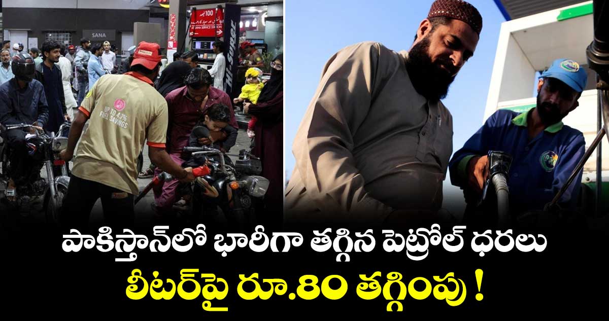 ఇస్లామాబాద్: పాకిస్తాన్లో పెట్రోల్ ధరలు భారీగా తగ్గాయి. లీటర్ పెట్రోల్ ధరపై 80 రూపాయలు తగ్గించినట్లు పాకిస్తాన్ ప్రధాన మంత్రి షెషబాజ్ షరీఫ్ తెలిపారు. 80 రూపాయలు రేటు తగ్గాక పాకిస్తాన్లో లీటర్ పెట్రోల్ ధర 378 రూపాయలకు చేరింది.
