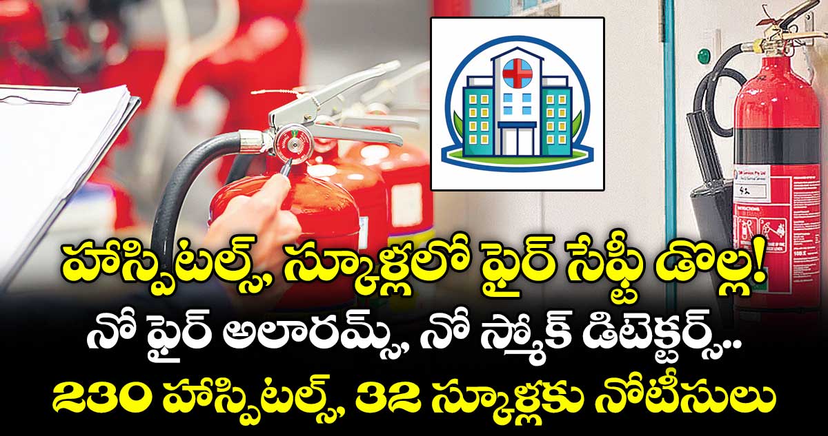 ఈ క్రమంలో రాష్ట్రంలోని దాదాపు 800 ప్రభుత్వ, ప్రైవేట్ హాస్పిటల్స్లో తనిఖీలు చేశారు. అత్యధికంగా ప్రైవేట్హాస్పిటల్స్లో ఫైర్ అలారమ్స్, స్మోక్ డిటెక్టర్లు, ఆటోమేటిక్ స్ప్రింక్లర్లు, హౌస్ రీల్స్, ఫైర్ ఎక్స్టింగ్విషర్లు లేవు. ఉన్నచోట్ల సరిగ్గా పనిచేయట్లేదు. చాలా హాస్పిటల్స్, స్కూళ్లలో ఎగ్జిట్ డోర్లు లేవు. ఉన్నచోట్ల పనిచేయడం లేదు. లేదంటే తాళాలు వేసి ఉంచడం అధికారులను విస్మయపరిచింది. మొత్తం మీద ఫైర్ సేఫ్టీ నిబంధనలు పాటించని 230 హాస్పిటల్స్కు, 32 స్కూళ్లకు అధికారులు నోటీసులు జారీ చేశారు.