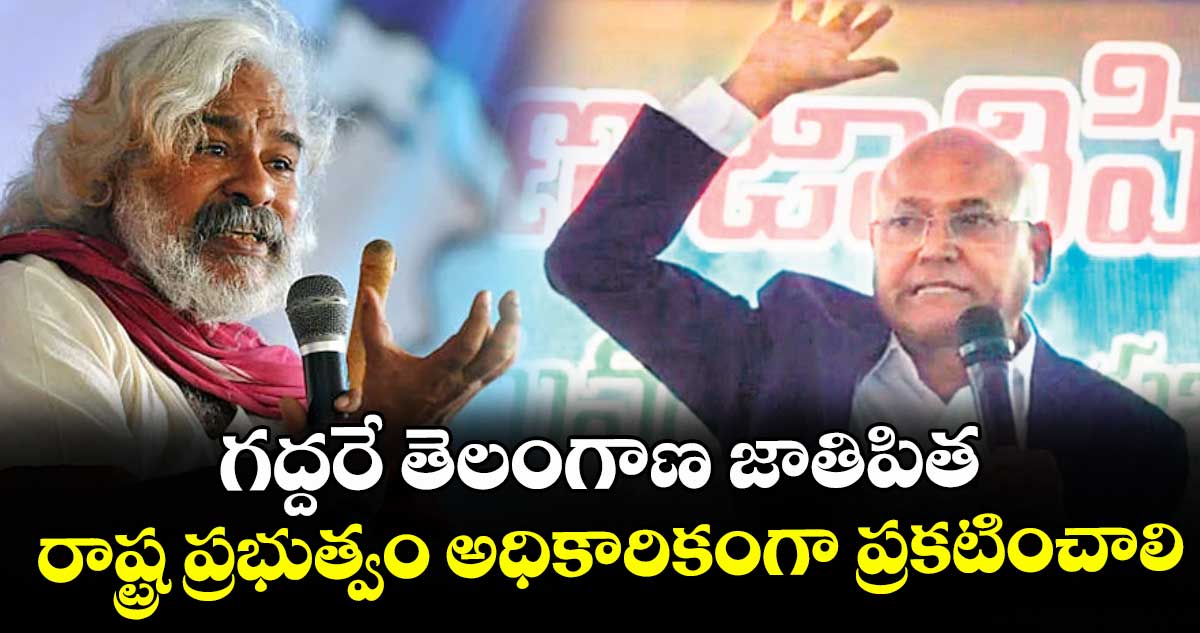 ఒక్క కాళేశ్వరంలోనే లక్ష కోట్ల అవినీతి జరిగిందని విచారణ జరుగుతుండగా.. కేసీఆర్తనను జాతిపితగా ప్రకటించుకోవడం ఏందని నిలదీశారు. గద్దర్ గుండెల్లో బుల్లెట్లు దిగడానికి ఉమ్మడి రాష్ట్ర సీఎం చంద్రబాబే కారణమని ఆరోపించారు. అద్దంకి దయాకర్ మాట్లాడుతూ వేదికపై ప్రతిపాదించిన ప్రజాభీష్టాన్ని సీఎం దృష్టికి తీసుకెళ్తానని తెలిపారు. ఈ కార్యక్రమంలో గద్దర్ కూతురు వెన్నెల, తెలంగాణ సాంస్కృతిక శాఖ చైర్ పర్సన్ విమలక్క, పాశం యాదగిరి, గద్దర్ గళం వ్యవస్థాపకుడు కొల్లూరి సత్తయ్య, బేబీ రాజు, పృథ్వీరాజ్, డాక్టర్ శ్రీనివాస్, గుడిపల్లి రవి, కార్యక్రమ నిర్వాహకుడు మాజీ కౌన్సిలర్ భరత్, పసునూరి రవీందర్ తదితరులు పాల్గొన్నారు.
