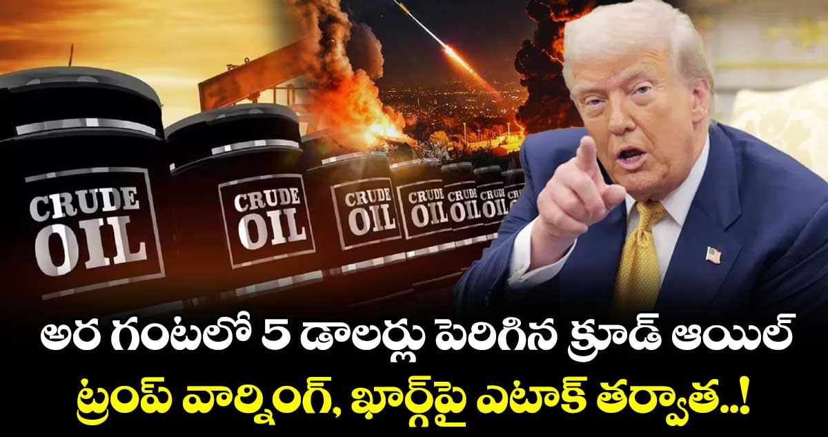 అంతర్జాతీయ మార్కెట్లో క్రూడాయిల్ ధరలు పరుగులు పెడుతున్నాయి. అంతర్జాతీయ మార్కెట్లో ఇప్పటికే సెంచరీ క్రాస్ చేసిన క్రూడాయిల్ ధరలు మంగళవారం (ఏప్రిల్ 7) అర గంటలోనే ఏకంగా ఐదు డాలర్లు పెరిగింది. క్రూడ్ ధరలు అమాంతం 5 డాలర్లు పెరగడానికి ప్రధాన కారణంగా మంగళవారం (ఏప్రిల్ 7) అంతర్జాతీయంగా చోటు చేసుకున్న రెండు సంఘటనలే. అవేంటంటే.. ఇరాన్కు కీలకమైన చమురు రవాణా కేంద్రమైన ఖార్గ్ ద్వీపంపై మంగళవారం అమెరికా భీకర దాడులు చేయడం ఒకటి.