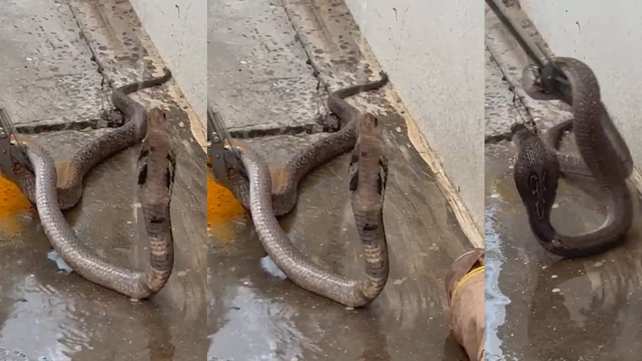 పామును పట్టుకున్న స్నేక్ క్యాచర్ నాగు పాము దాహంతో ఉన్నట్లు గుర్తించాడు. ఎండల తీవ్రతను తాళలేక అటవీ ప్రాంతం నుంచి దాహర్తి కోసం వచ్చినట్టు గుర్తించి నీటిని తాపించే ప్రయత్నం చేసాడు.