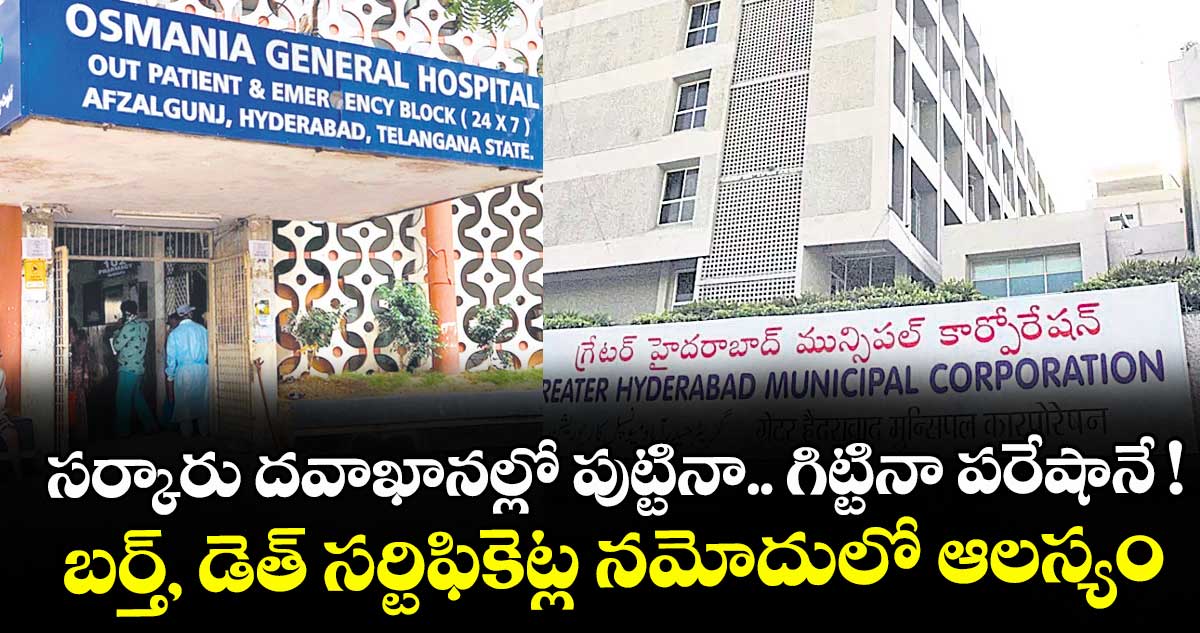 నగరంలోని ఉస్మానియా, గాంధీ, నిలోఫర్, పేట్లబురుజు, కోఠి మెటర్నటీ, ఎంఎన్ జే క్యాన్సర్హాస్పిటల్వంటి ప్రధాన దవాఖానల్లో అధికారులు, సిబ్బంది తీరు వల్ల సమయానికి సర్టిఫికెట్లు అందడం లేదు. ఈ దవాఖానలన్నింటిలో కలిపి రోజూ వందల సంఖ్యలో డెలివరీలు, మరణాలు సంభవిస్తుంటాయి. వీటిని ఎప్పటికప్పుడు అప్డేట్ చేయాల్సిన సిబ్బంది లైట్తీస్కుంటున్నారు.