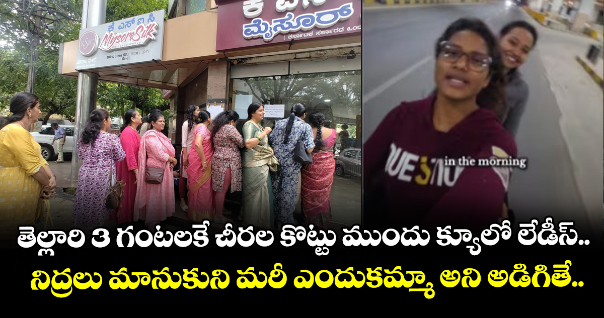 తెల్లవారుజామున 3 గంటలకు, 4 గంటలకు బిర్యానీలు తినే సిటీ జనాన్ని చూసే ఉంటారు. సిటీల్లో ప్రస్తుతం ఇదో వేలం వెర్రి.. మిడ్ నైట్ బిర్యానీ, లేట్ నైట్ బిర్యానీ, 3 am బిర్యానీ, 4 am బిర్యానీ.. ఇలా రకరకాల పేర్లతో సిటీ జనం మిడ్ నైట్ నుంచి వేకువ జాము వరకూ బిర్యానీలను ఆవురావురమని లాగించేస్తుంటారు. ఈ ట్రెండ్ అందరికీ తెలిసిందే. కానీ.. చీరల కోసం వేకువ జామున 3 గంటలకు షాపింగ్ మాల్ దగ్గర పడిగాపులు కాస్తున్న పబ్లిక్ను మీరెప్పుడైనా చూశారా..? ఈ తరహా జనాన్ని బెంగళూరులో మీరు చూడొచ్చు. ఒక యువతి ఇన్స్టాగ్రాం సాక్షిగా ఈ విషయాన్ని బయటపెట్టింది.