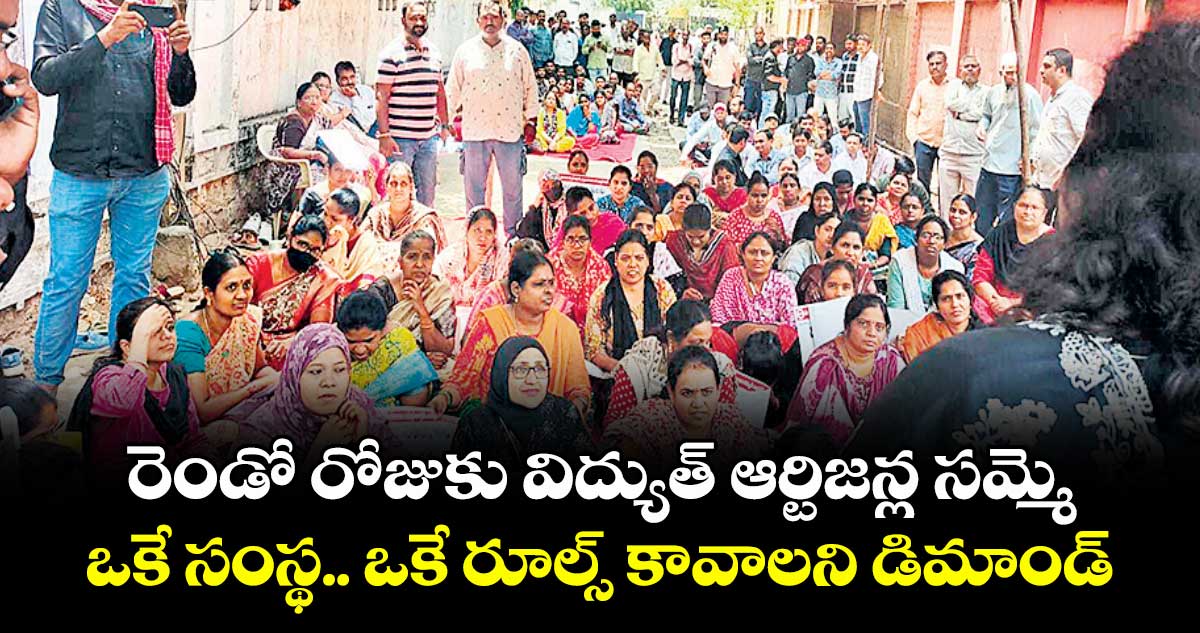 పంజాగుట్ట/మెహిదీపట్నం/వికారాబాద్, వెలుగు: విద్యుత్ ఆర్టిజన్ కార్మికులు చేపట్టిన నిరవధిక సమ్మె రెండో రోజుకు చేరింది. గురువారం మింట్ కాంపౌండ్, మెహిదీపట్నం, ఓల్డ్ సిటీ, వికారాబాద్లో కార్మికులు భారీ ఎత్తున ధర్నాలు, వంటా-వార్పు కార్యక్రమాలు నిర్వహించారు. ఈ సందర్భంగా ఆర్టిజన్ జేఏసీ నాయకులు మాట్లాడుతూ.. విద్యుత్ సంస్థల్లో పనిచేస్తున్న కార్మికులందరికీ ఒకే రకమైన సర్వీస్ రూల్స్ అమలు చేయాలని డిమాండ్ చేశారు.