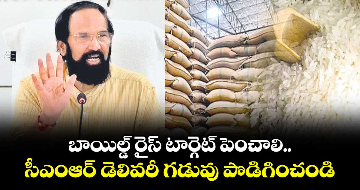 అదే విధంగా గత వానాకాలం, ఈయాసంగి(2025–26) రెండు సీజన్లలో కలిపి బాయిల్డ్ రైస్ టార్గెట్ 20 నుంచి 40 లక్షల టన్నులకు పెంచాలని మంత్రి ఉత్తమ్ కోరారు. గత వానాకాలంలో 71.86 లక్షల టన్నుల ధాన్యం సేకరించామనీ, ఈయాసంగిలో భారీగా వరి సాగు జరిగిన నేపథ్యంలో 95 లక్షల టన్నుల ధాన్యం కొనగోలు సెంటర్లకు వస్తుందని అంచనా వేసినట్లు తెలిపారు. యాసంగి ధాన్యం బాయిల్డ్ రైస్కు ఎక్కువగా అనుకూలమైనవని అన్నారు. గత ఆరు యాసంగి సీజన్లలో బాయిల్డ్ రైస్ డెలివరీ శాతం ఎక్కువగా ఉందని మంత్రి ఉత్తమ్ తెలిపారు.