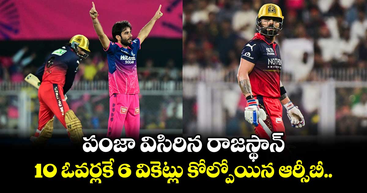 ఇక ఆర్సీబీ కృనాల్ పాండ్యాకు ప్రమోషన్ ఇచ్చి బ్యాటింగ్ లో ముందుకు పంపించింది. దీంతో అతడు క్రీజులోకి వచ్చి కేవలం 5 పరుగులు మాత్రమే చేసిన తర్వాత రవి బిష్ణోయ్ బౌలింగ్ లో షిమ్రాన్ హెట్మెయర్ కి క్యాచ్ ఇచ్చి డకౌట్ కి వెళ్లిపోయాడు. అనంతరం బ్యాటింగ్ కి వచ్చిన జితేష్ శర్మ సైతం దారుణంగా విఫలమయ్యాడు. జస్ట్ 6 రన్స్ చేసి బ్రిజేష్ శర్మ బౌలింగ్ లో LBW గా వెనుదిరిగాడు. ఆ తర్వాత బ్యాటింగ్ కి వచ్చిన టీమ్ డేవిడ్ కూడా ఈసారి నిరాశపరిచాడు, కేవలం 13 పరుగులు మాత్రమే చేసి రవి బిష్ణోయ్ బౌలింగ్ లో హెట్మెయర్ కి ఇచ్చి మైదానం వదిలి వెళ్లాడు. దీంతో కేవలం 94 పరుగులకే రాయల్ ఛాలెంజర్స్ బెంగళూరు జట్టు కీలకమైన 6 వికెట్లని నష్టపోయింది. ప్రస్తుతం క్రీజులో రజత్ పాటిదార్ ( 19), రోమారియో షెపర్డ్ (6) ఉన్నారు.