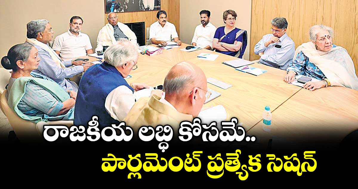 న్యూఢిల్లీ, వెలుగు:కేంద్రంలోని ప్రధాని నరేంద్ర మోదీ సర్కార్ రాజకీయ ప్రయోజనాల కోసమే మూడు రోజుల పాటు పార్లమెంటు ప్రత్యేక సమావేశాలను నిర్వహించాలని నిర్ణయించిందని ఏఐసీసీ చీఫ్ మల్లికార్జున ఖర్గే ఫైర్ అయ్యారు. నియోజకవర్గాల పునర్విభజన(డీలిమిటేషన్), చట్ట సభల్లో మహిళలకు 33 శాతం కోటా అంశాలపై ఈ నెల 16 నుంచి ప్రత్యేక సెషన్ నిర్వహించేందుకు కేంద్రం సిద్ధమైందని, అయితే దీనిపై ప్రభుత్వం నుంచి కాంగ్రెస్ పార్టీకి అధికారిక ప్రతిపాదన రాలేదన్నారు. ప్రధాన మంత్రి రాసిన వ్యాసం ద్వారానే తమకు కొన్ని విషయాలు తెలిశాయన్నారు.